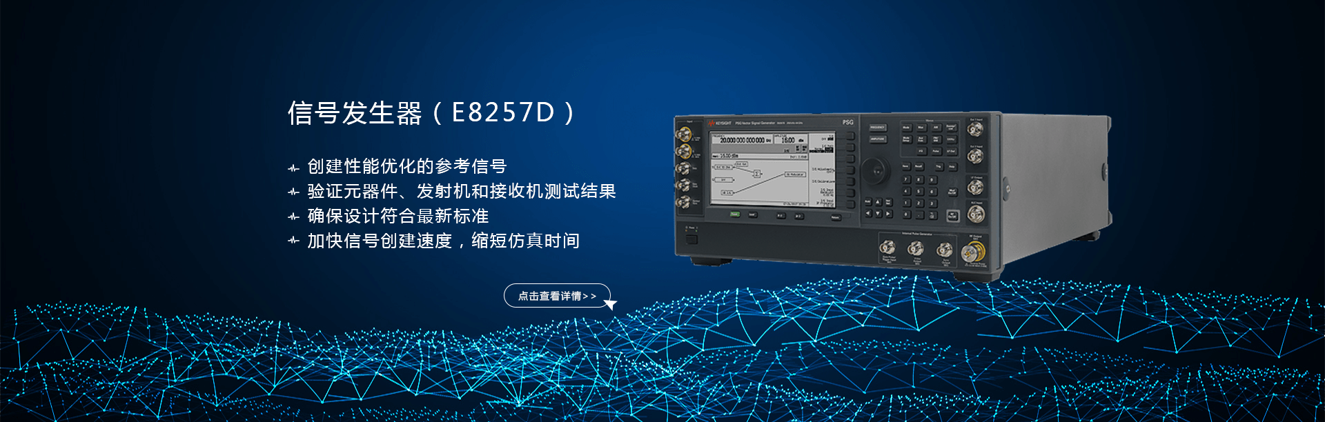主要產(chǎn)品有:頻譜分析儀,網(wǎng)絡(luò)分析儀,綜合測(cè)試儀,藍(lán)牙wifi測(cè)試儀,噪聲系數(shù)測(cè)試儀,接收機(jī),電話測(cè)試儀,高、低頻信號(hào)源,音、視頻信號(hào)分析儀,高精度萬用表, LCR/ 電橋、各種通信電源等。經(jīng)營(yíng)的儀器品牌主要有:Keysight/Agilent (惠普 / 安捷倫)、 R/S (羅德 & 施瓦茨)、 Anritsu (安立)、Litepoint、 FLUK( 福祿克 ) 、 TEK (泰克)等。